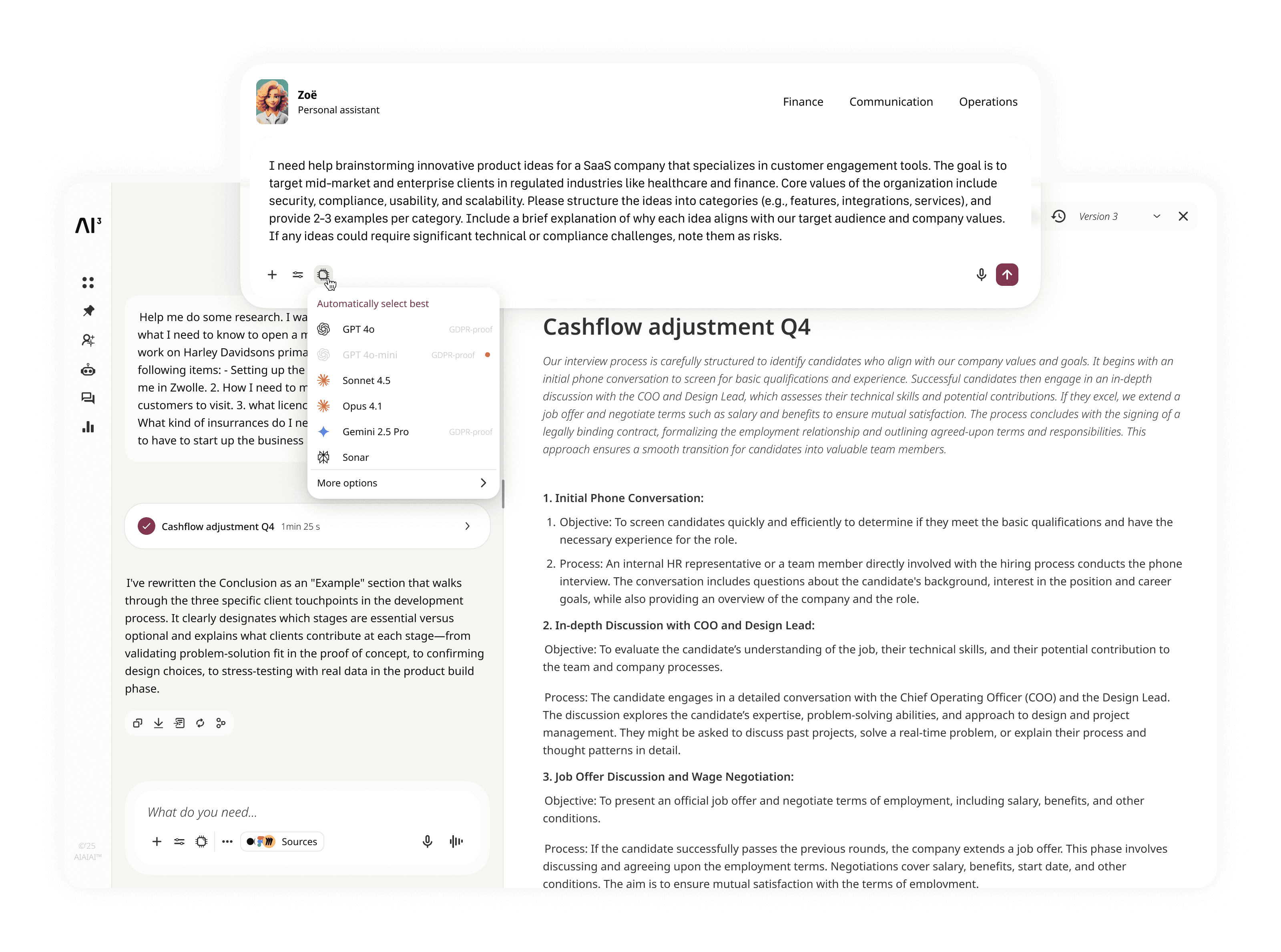 KI ist ein Wendepunkt – wenn man weiß, wo man sie einsetzen kann. AIAIAI kommt mit integrierten Agents für jedes Abteilung, die aufzeigen, wo Mehrwert zu finden ist. Alles ist mit Ihren Unternehmensdaten verbunden, um die richtigen Formate und den passenden Ton zu gewährleisten. Nicht gefunden, wonach Sie suchen? Erstellen Sie Ihre eigene Lösung.